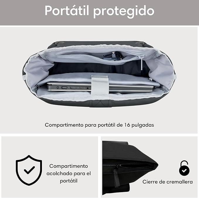 - Utiliza el compartimento especial para portátil para asegurar la protección de tu dispositivo.